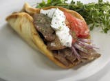 Delicious sandwich served with spiced, grilled pita topped with lettuce, tomato, onion, and a flavorful tzatziki sauce.